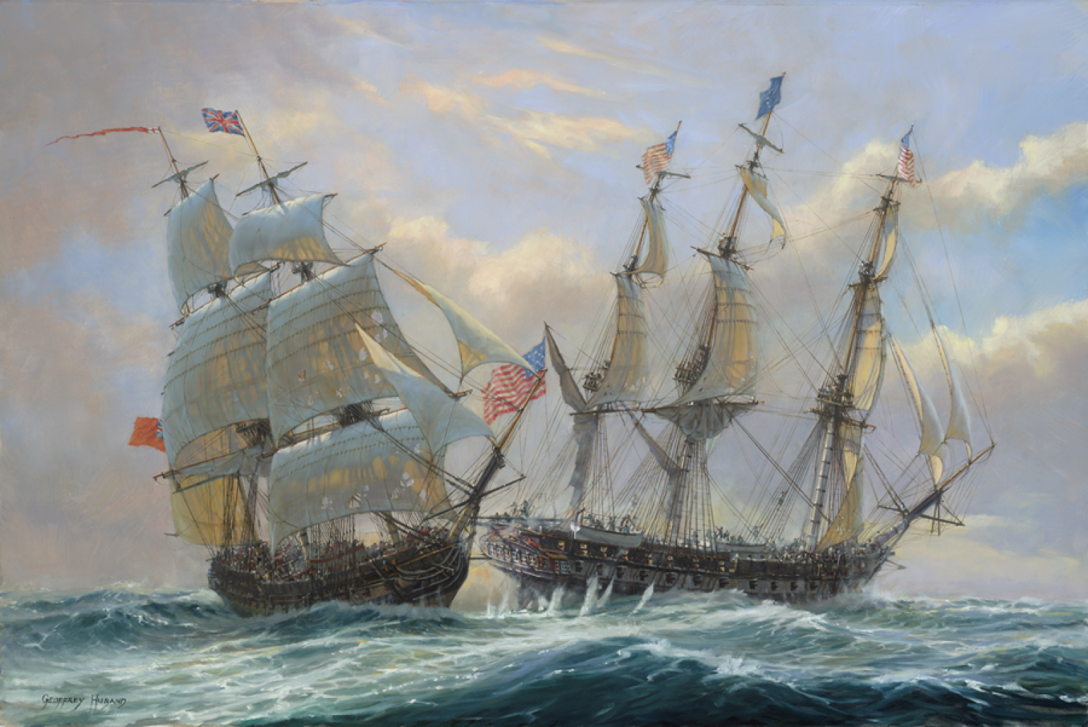 On that basis, he maneuvered to regain his position to windward (larboard) of the big American, but made the mistake of not keeping his distance.